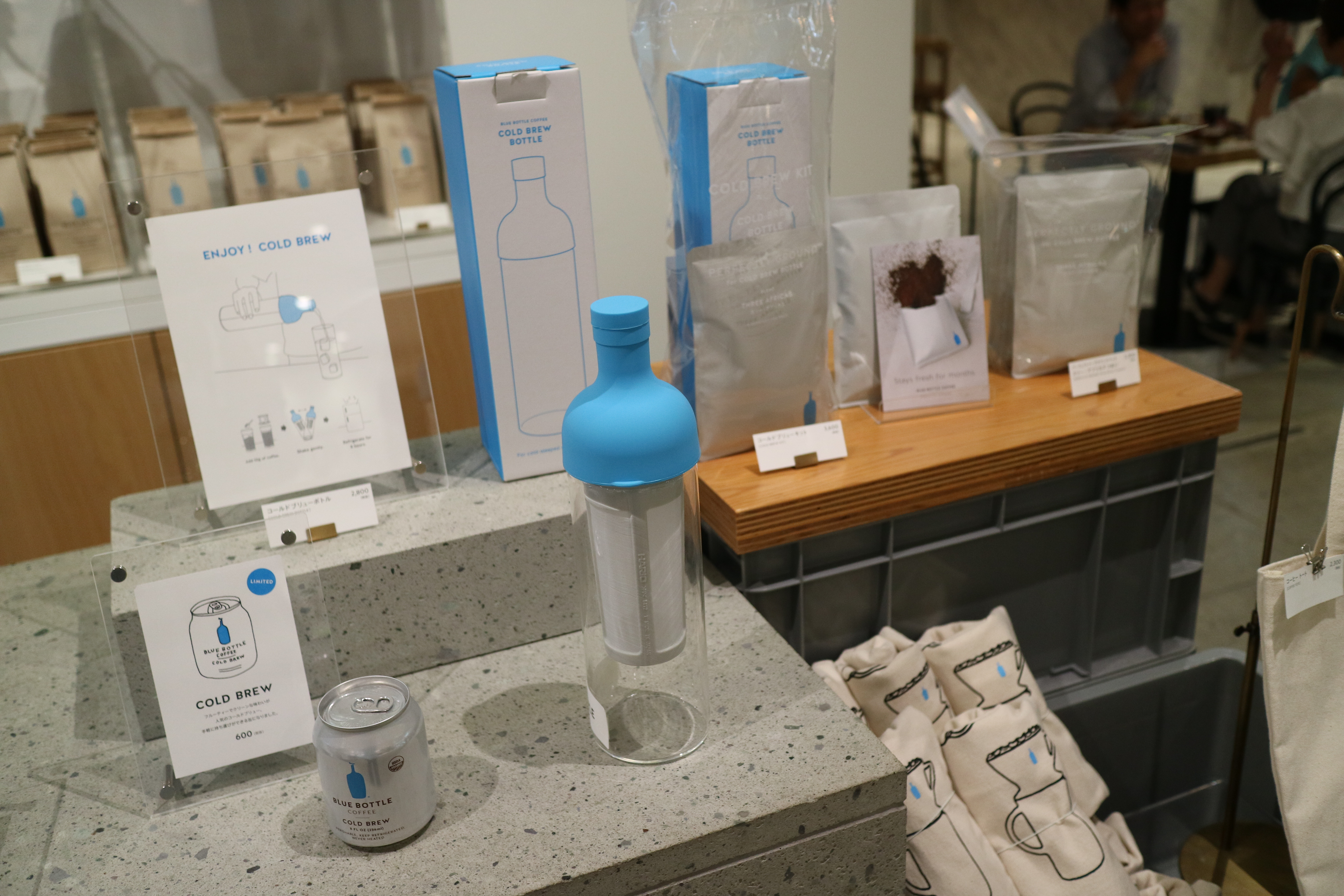 블루보틀의 로고와 다양한 굿즈들도 눈에 띄네요.