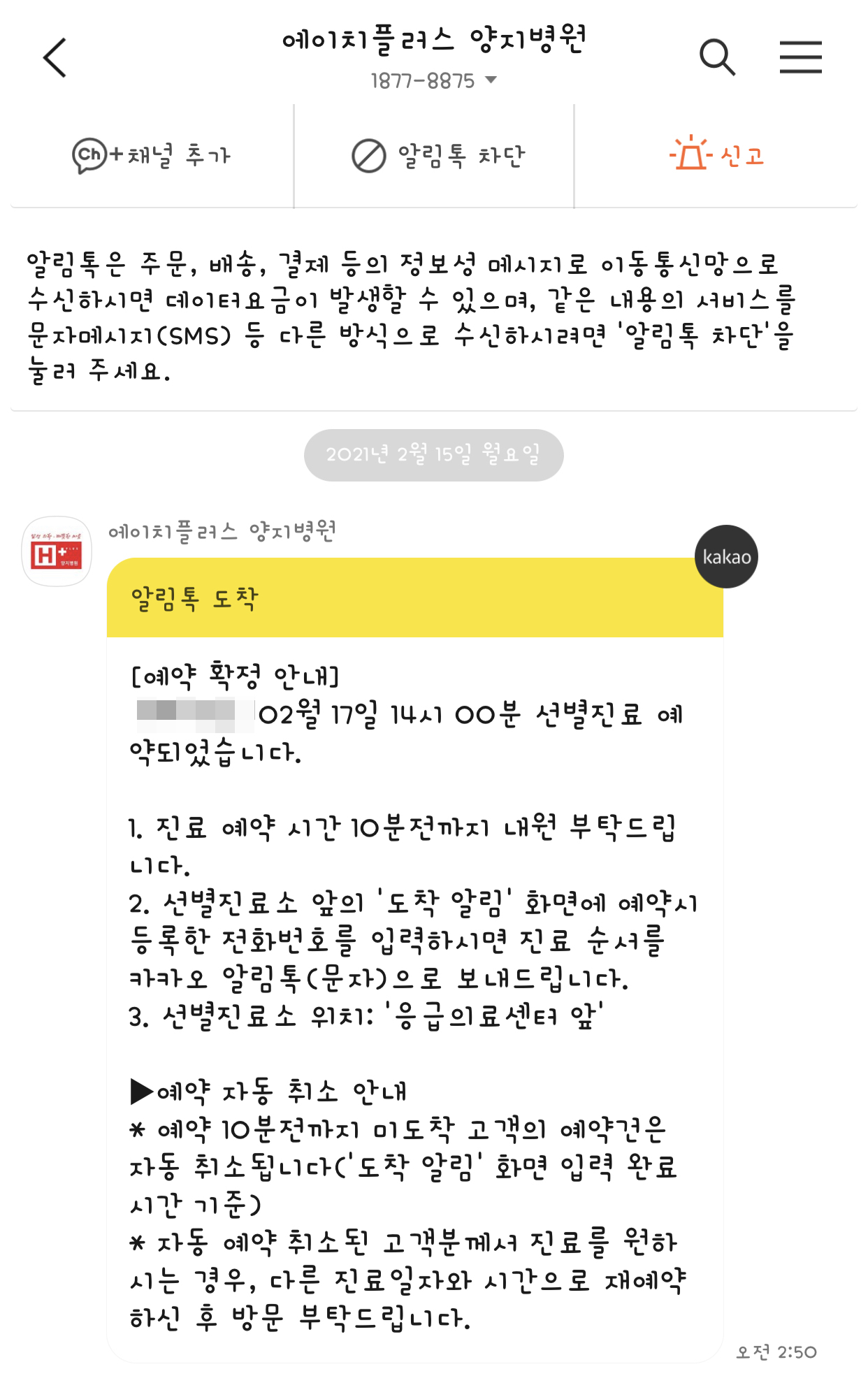 휴대폰 번호 입력하니 카톡으로 바로 호출번호가 전송되더라고요.