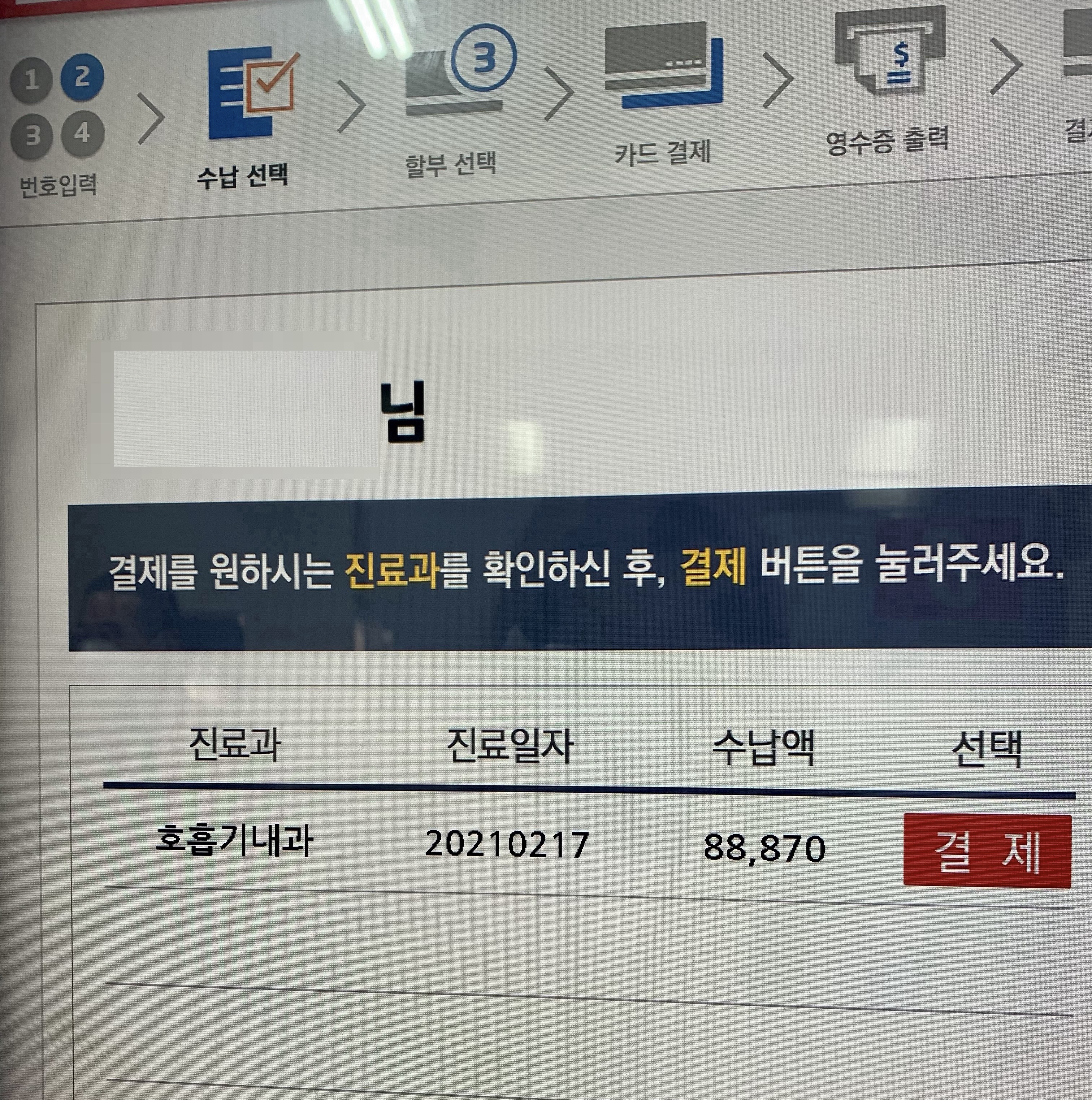 검사 부스 나오자마자 무인 수납기에서 바로 결제했어요~!!