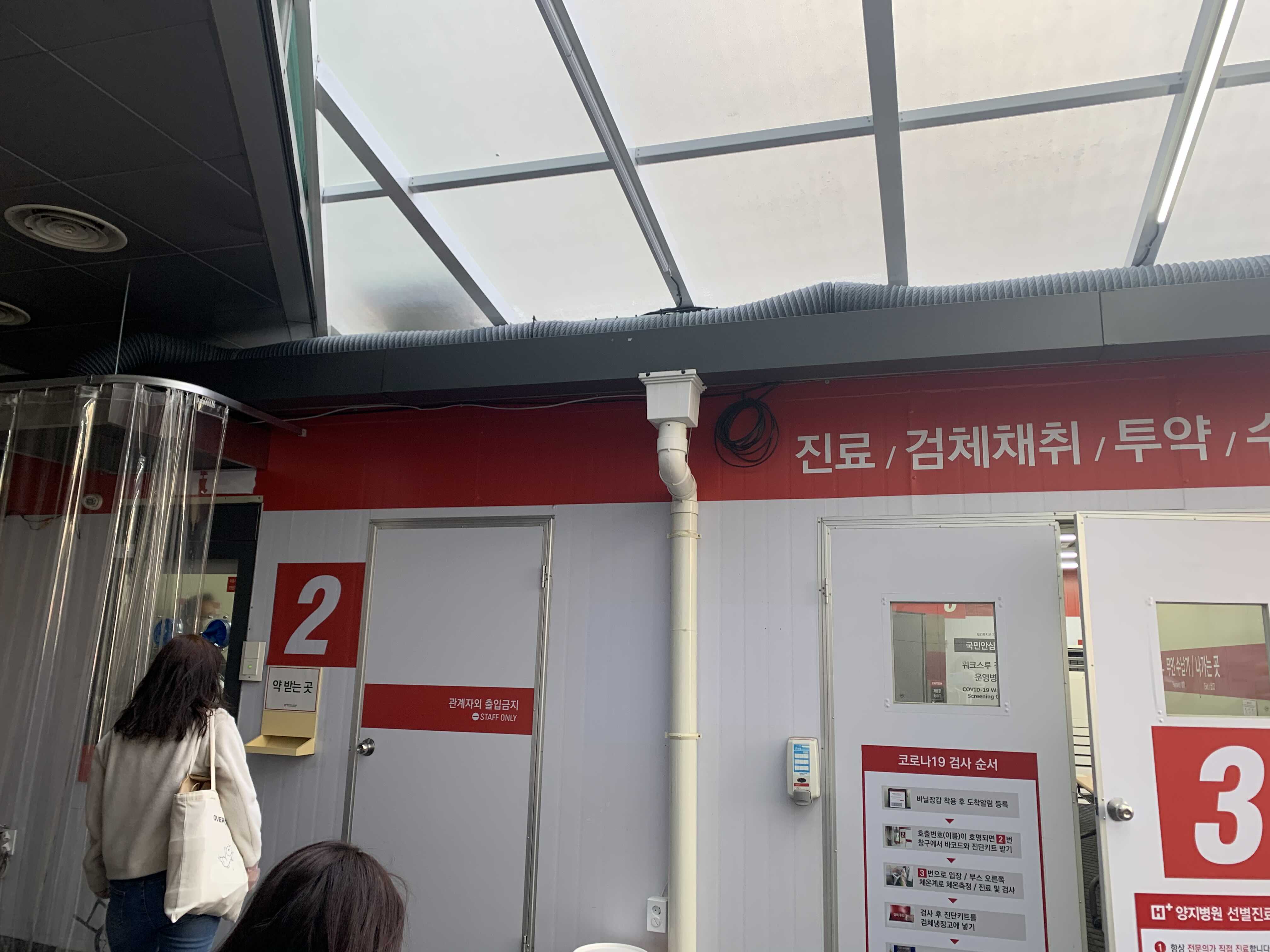 검체채취하고 검사 부스에서 1분 정도 소독 후 나와서