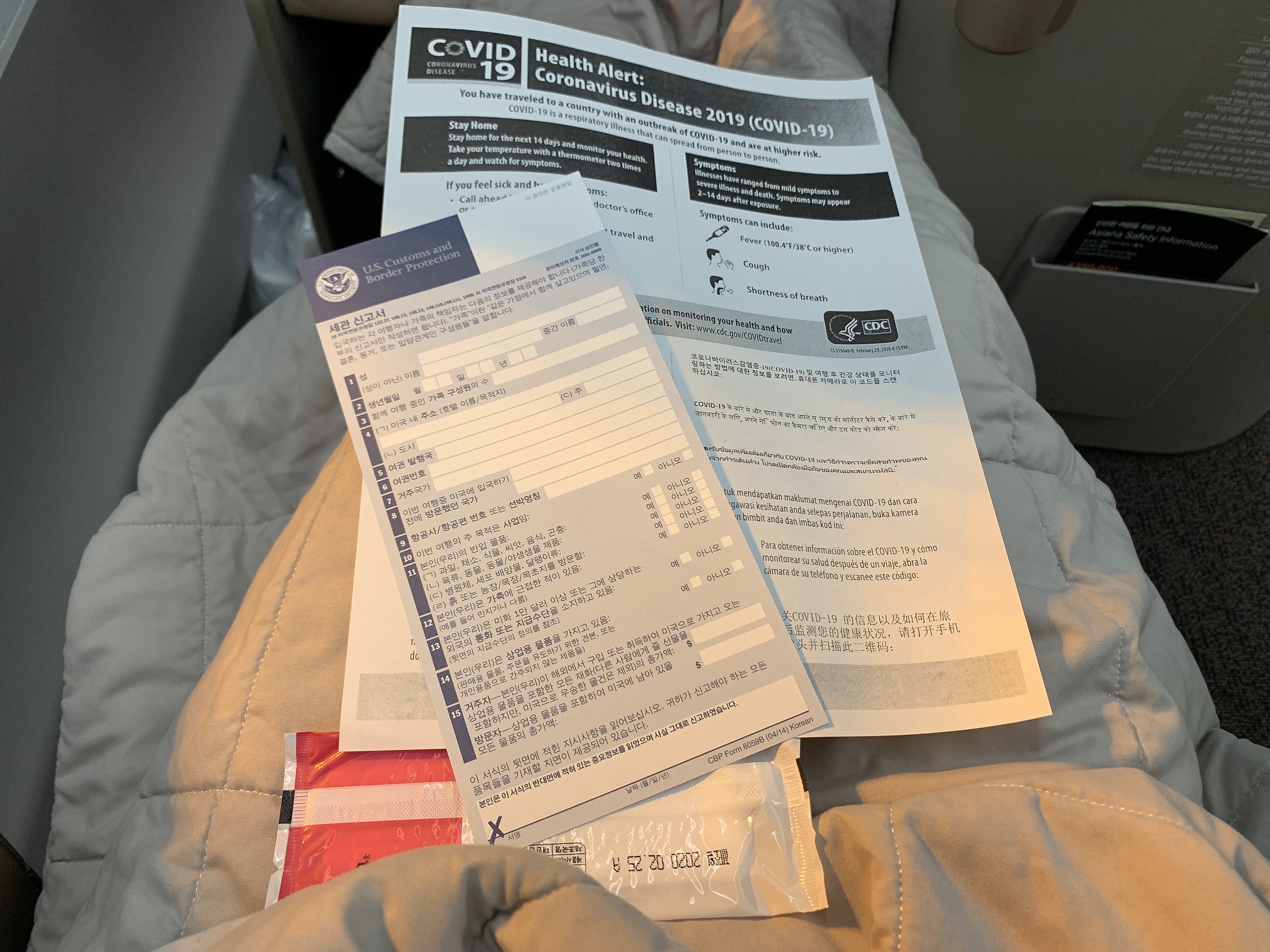 세관 신고서 받아 놓고 물티슈로 손부터 씻었어요~